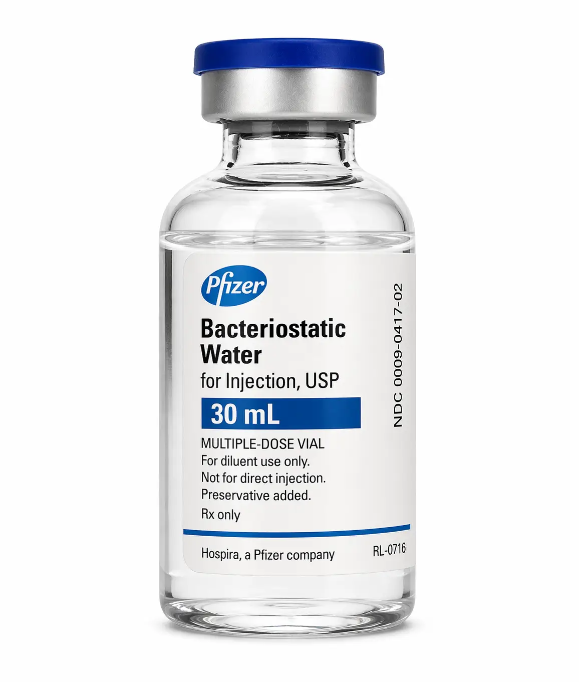 Sterile bacteriostatic water with 0.9% benzyl alcohol. 10ml vial. For research reconstitution use only.